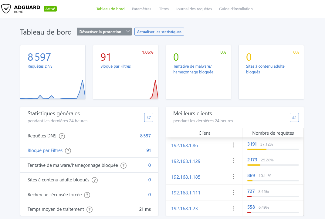 Serveur DNS, agit comme un bloqueur de pub sur l'ensemble du réseau local AdGuard Home est un logiciel réseau pour bloquer les publicités et le tracking. Une fois configuré, il couvre tous les appareils du réseau sana avoir besoin d'installer un client sur ces appareils. En savoir plus sur notre référentiel officiel Github.
